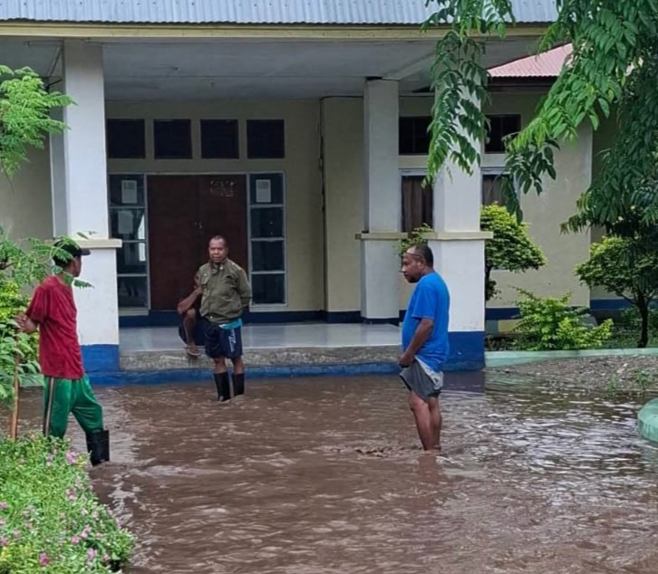 WNK – Akibat hujan deras mengguyur di wilayah Kecamatan Alor Timur, Kabupaten Alor, Nusa Tenggara Timur semenjak pukul 11.35 hungg 13.30 (WITA) hari ini, sejumlah fasilitas umum (fasum) seperti Jalan Raya Umum, Kantor Kecamatan Alor Timur, KF. Bank NTT Maritang, Gedung PKK Kecamatan Alor Timur di Maritaing terendam banjir.