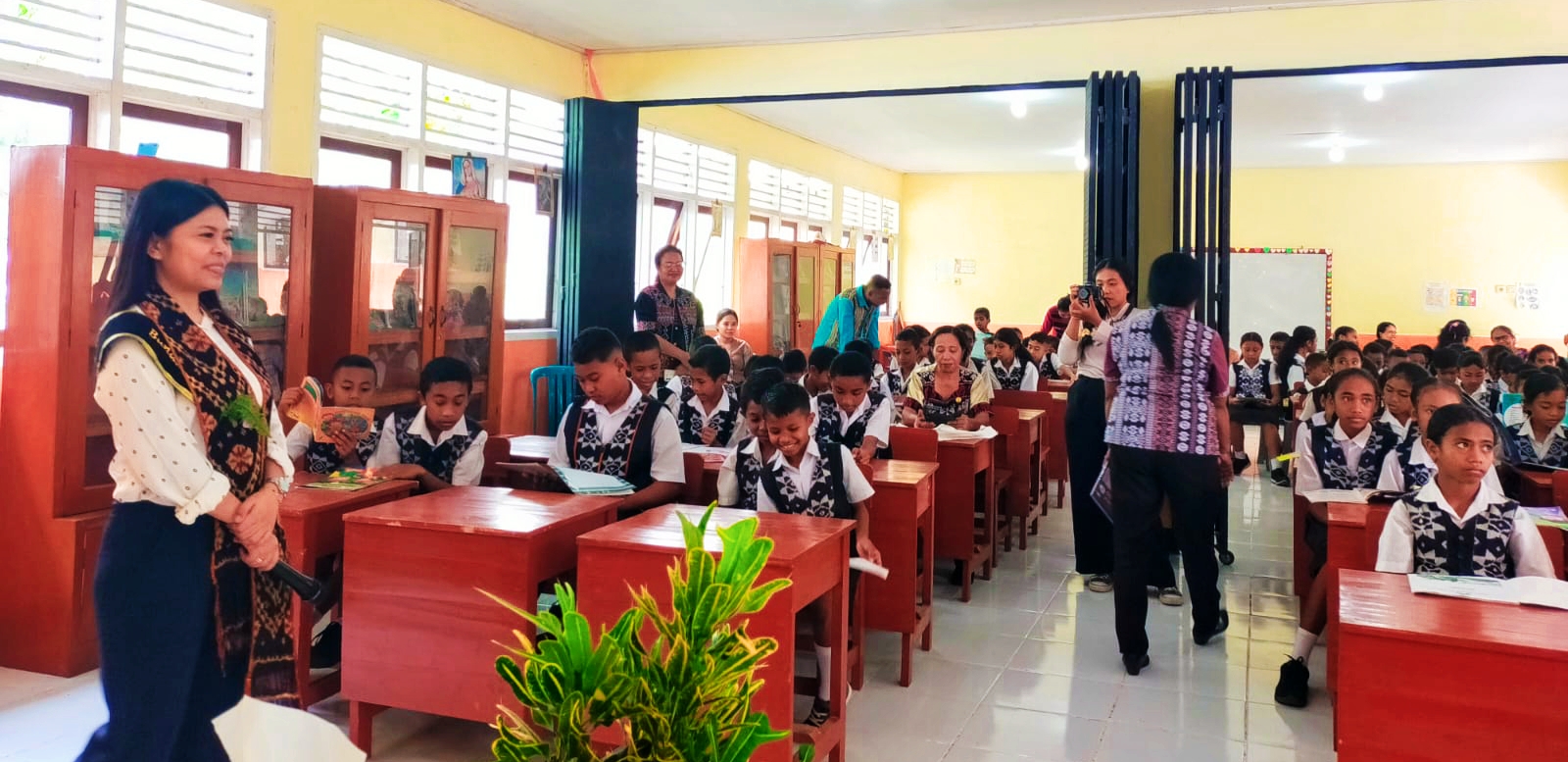 WNK – Bunda Literasi Ny. Fista Sambuari Kago, SH, menggelar kegiatan literasi dan sains bersama siswa-siswi Sekolah Dasar Inpres (SDI) Solot, Kecamatan Nita, Kabupaten Sikka, Nusa Tenggara Timur, sebagai bagian dari penguatan Gerakan Literasi di tingkat sekolah dasar, Kamis 5 Maret 2026.