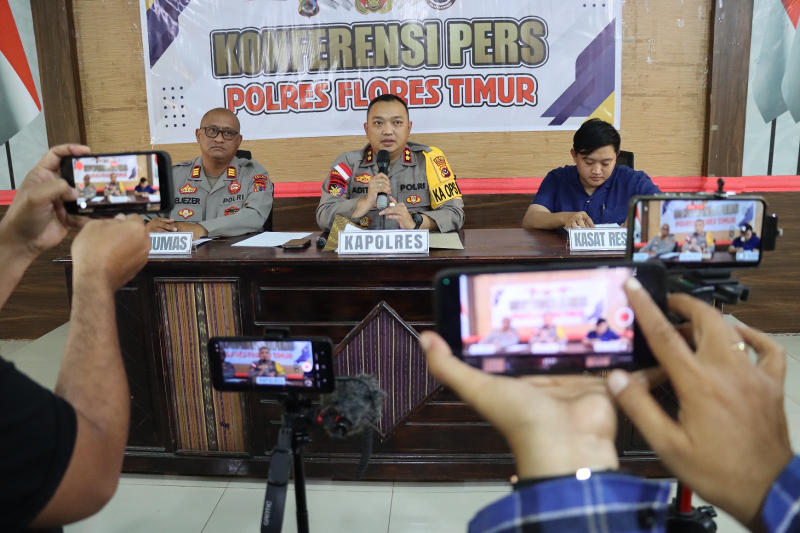 KONFRENSI PERS DI PIMPIN LANGSNG OLEH KAPOLRES FLOTIM AKBP ADHITYA OCTORIO PUTRA S. I. K