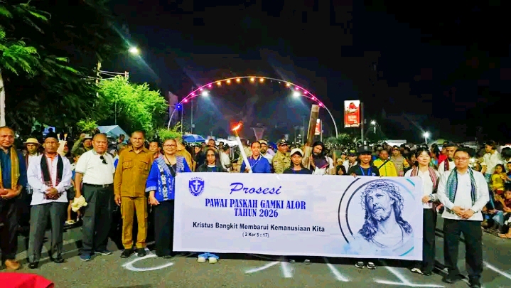 WNK – Wakil Gubernur Nusa Tenggara Timur Johni Asadoma, menghadiri sekaligus melepas kegiatan Pawai Paskah yang diselenggarakan oleh DPC GAMKI Kabupaten Alor Tahun 2026. Kegiatan yang dilaksanakan pada Senin 13 April 2026 sore hingga malam ini berlangsung khidmat dan meriah, dengan diikuti sebanyak 27 peserta yang menampilkan berbagai fragmen sebagai bentuk penginjilan serta penyampaian pesan teologis kepada masyarakat.